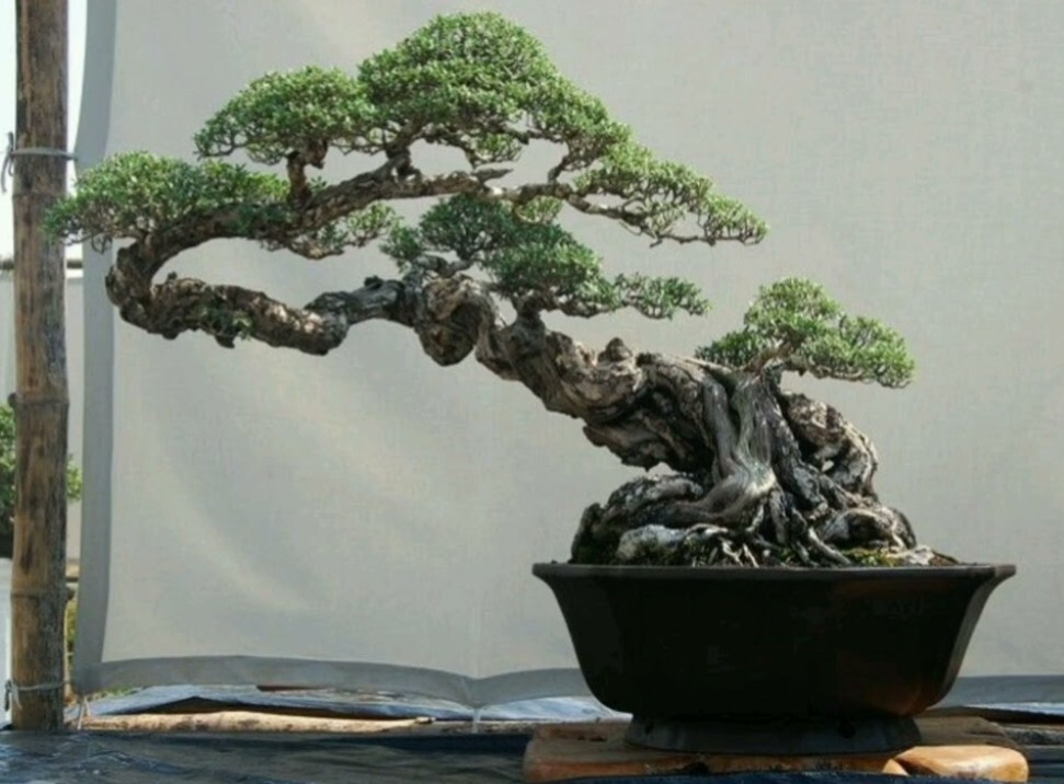 • Daun dan cabang pohon lainnya: Membuat kanopi alami dari cabang pohon berdaun lebat yang ditempatkan di atas bonsai.